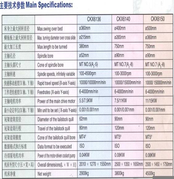 CKX6136/CKX6140/CKX6150型數(shù)控車床采用